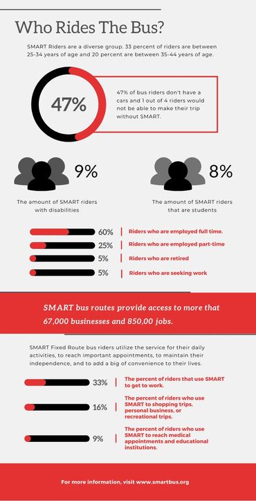 During my time as the communications coordinator at the Suburban Mobility Authority for Regional Transportation (SMART), I created a variety of one-off designs. For example, educational graphics for public info sharing and internal engagement flyers.